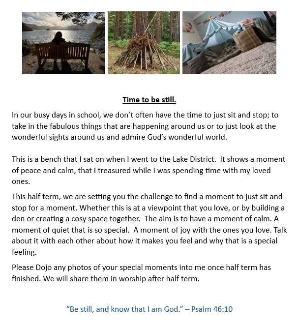 Click on the links below for a sheet of ideas linked to Christian Values to talk about at home. Our focus values are: Respect, Responsibility, Truthfulness, Trust, Forgiveness and Friendship.